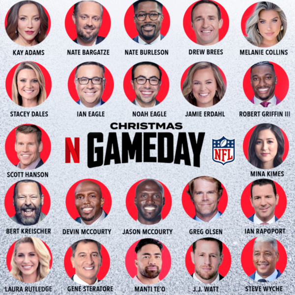 NFL Christmas Gameday has an all-star list of on-air talent (as if Beyoncé performing at the Ravens vs. Texans halftime show wasn’t enough).  The two  matchups include the Super Bowl LVII-winning Kansas City Chiefs vs. the Pittsburgh Steelers live on Netflix at 1 p.m. ET; followed by the Baltimore Ravens vs. the Houston Texans at 4:30 p.m. ET. Reporting from Pittsburgh, Houston, and Los Angeles, this roster of multi-award winning experts will help bring fans the ultimate Gameday experience, with analysis and commentary from pregame to the final score.